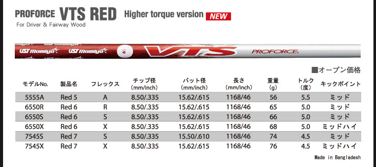 | VTS RED (Sold out - ขายไปแล้ว) 6 | SX | 68.0g | 5.0° | MID-HIGH |