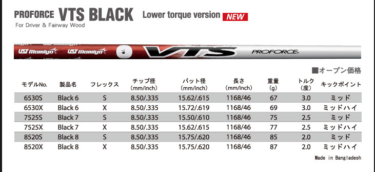 | VTS BLACK (Sold out - ขายไปแล้ว) 6 | X | 69.0g | 3.0° | MID-HIGH |