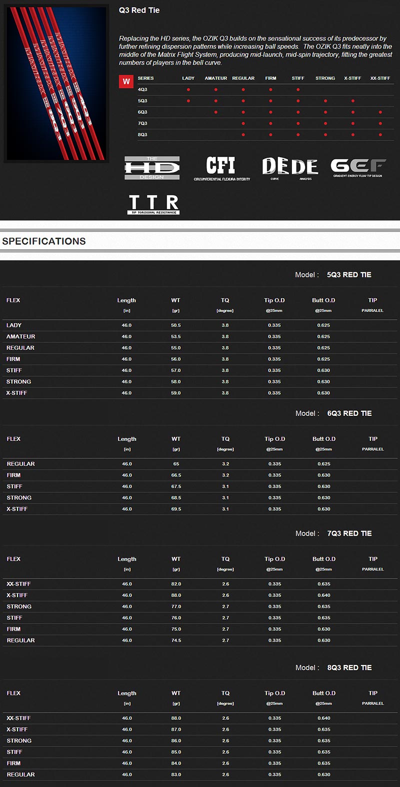 | Model | Flex [?] | Weight [?] | Torque [?] | Kick Point [?] |