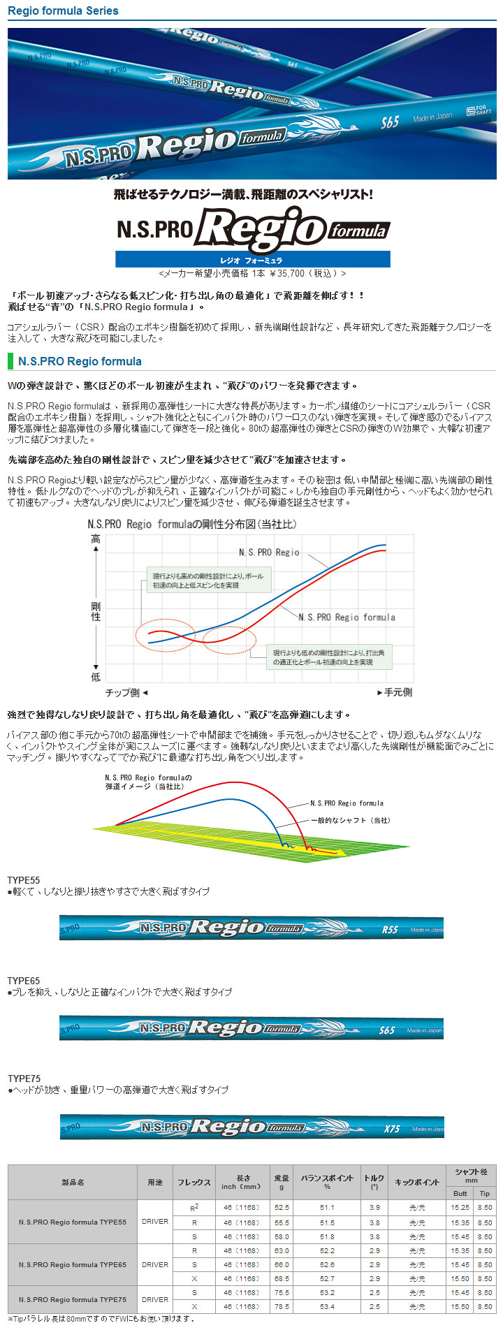 | N.S.PRO Regio Formula (Sold out - ขายไปแล้ว) 55 | S | 58.0g | 3.8° | MID-HIGH |