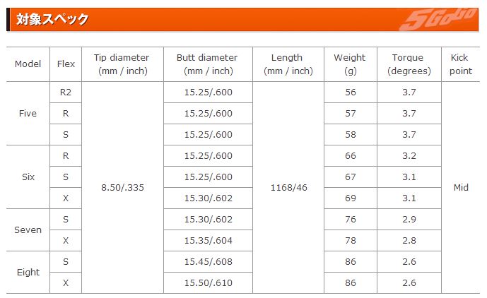 | Model | Flex [?] | Weight [?] | Torque [?] | Kick Point [?] |