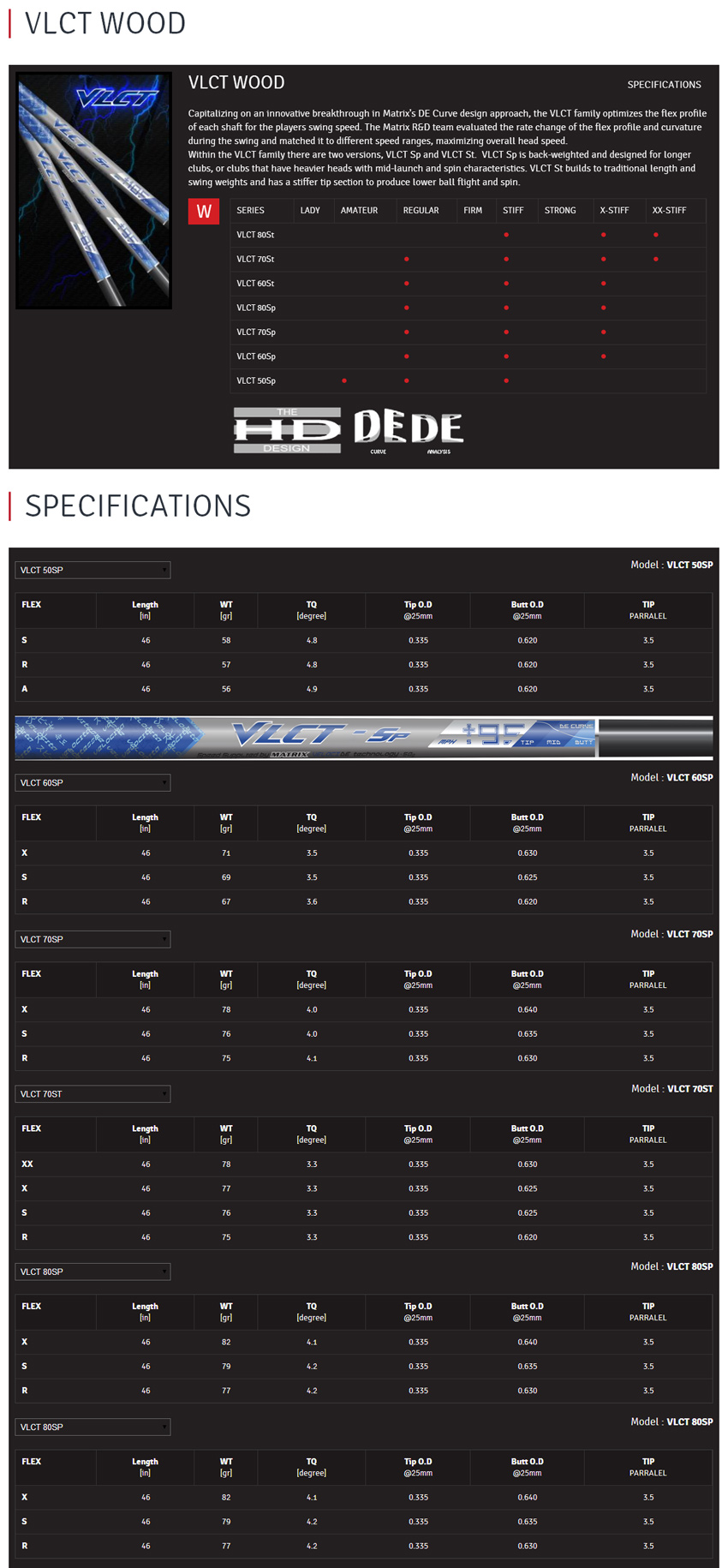 | Model | Flex [?] | Weight [?] | Torque [?] | Kick Point [?] |