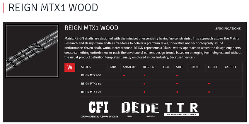 | Model | Flex [?] | Weight [?] | Torque [?] | Kick Point [?] |