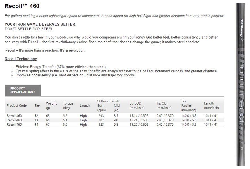 | Model | Flex [?] | Weight [?] | Torque [?] | Kick Point [?] |