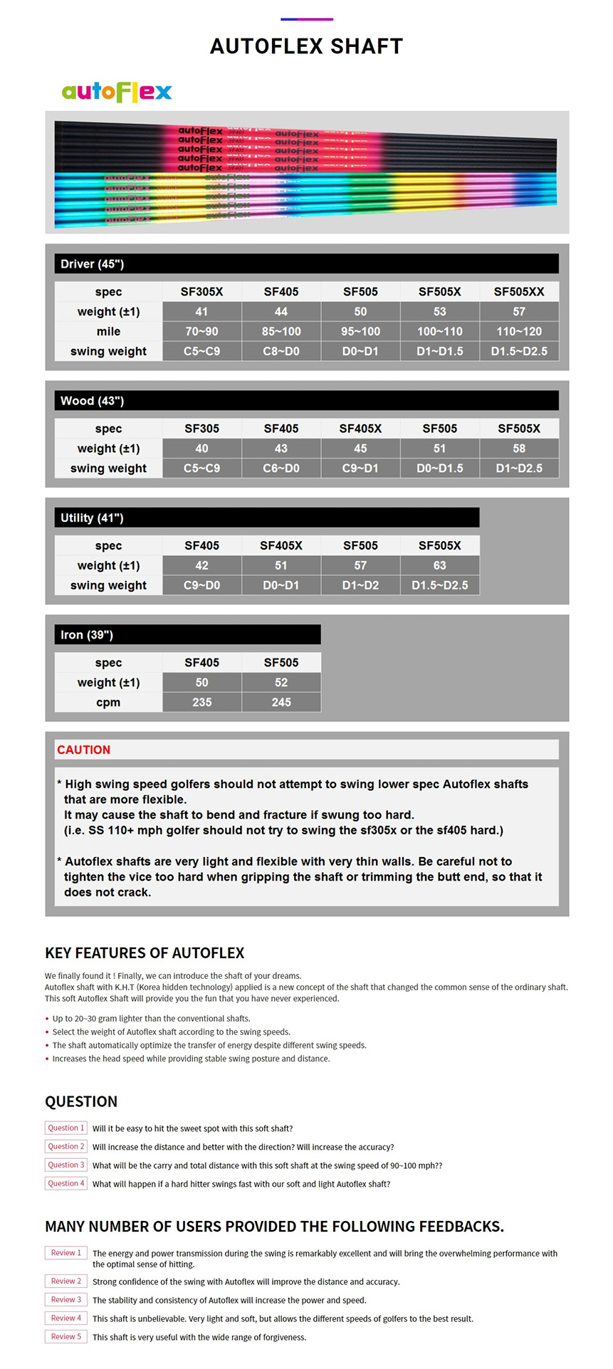 | Model | Flex [?] | Weight [?] | Torque [?] | Kick Point [?] |
