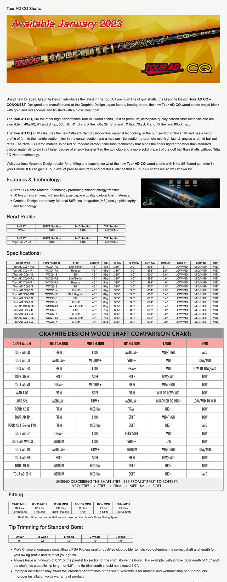 | Model | Flex [?] | Weight [?] | Torque [?] | Kick Point [?] |